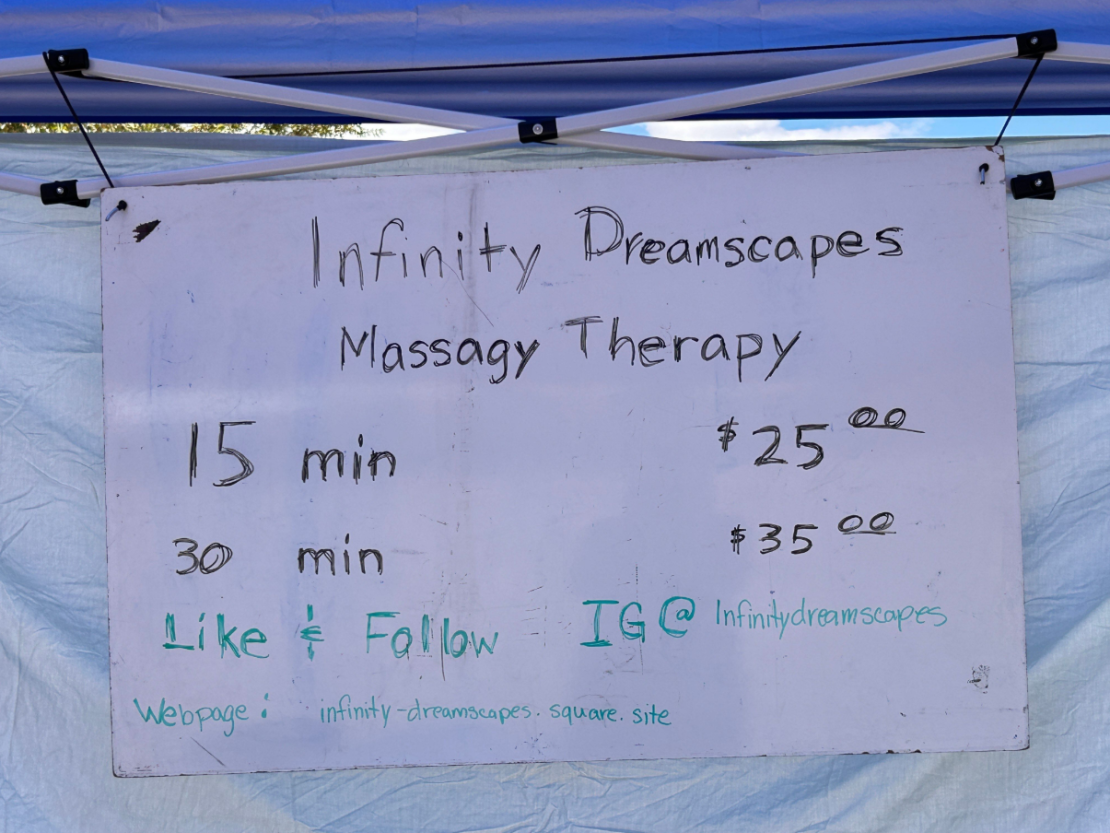 15-minute chair massages for $25.00 (Note: Website in image is no longer valid)
